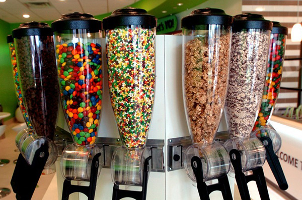 Choose from 16 delicious frozen yogurt and sorbet options with new, exciting flavors swirling every month.